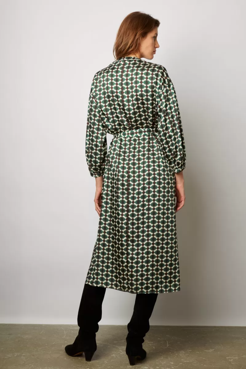 Vintage style maxi dress in geometric print. Silky feel. Straight cut Lozenge pattern Maxi dress Slightly pleate…